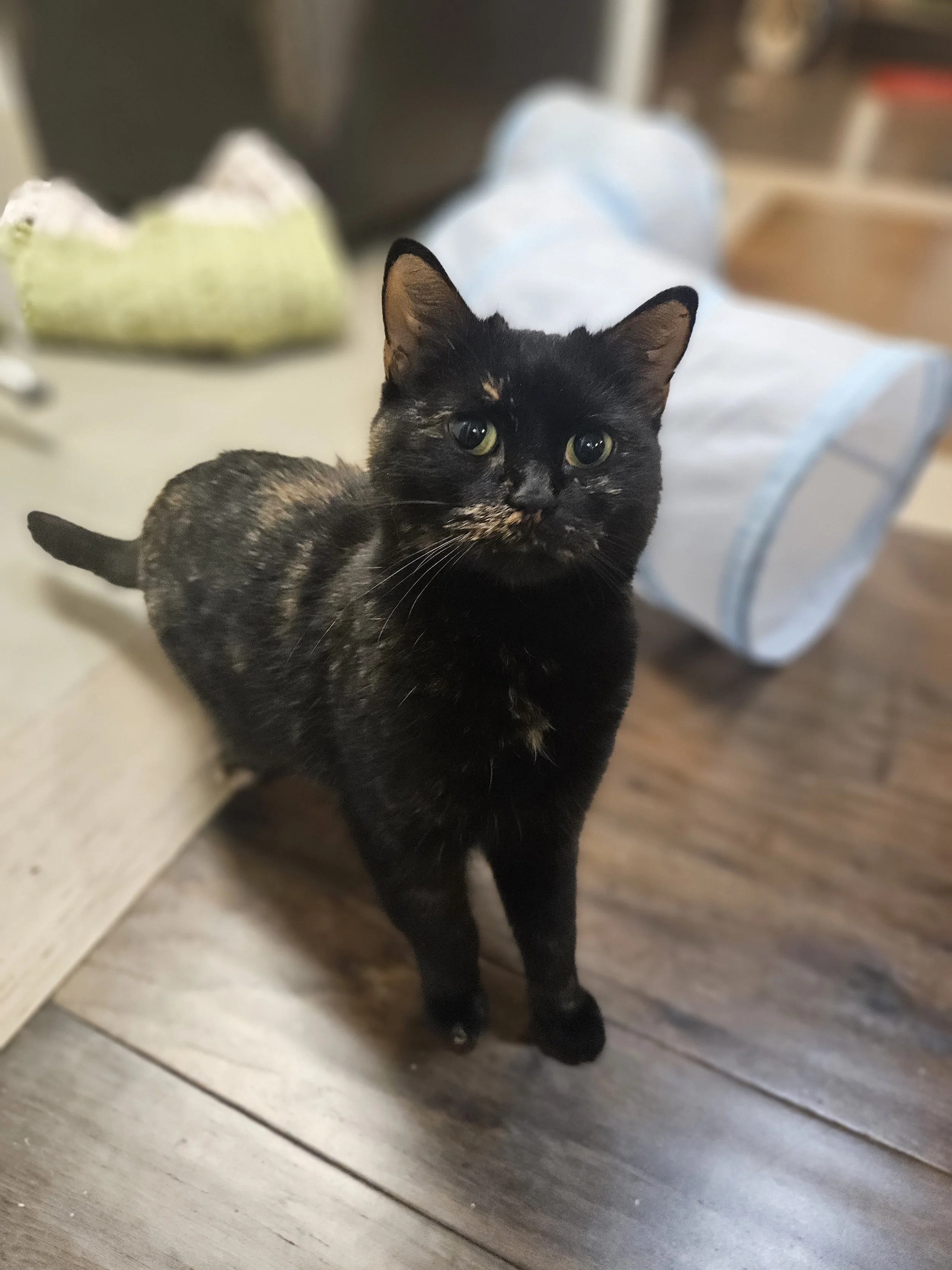 The perfect mix of sweet and sassy, with a dash of diva energy for flavour. I live for attention and will absolutely make sure you know when I'm not getting enough. Stop petting me too early? I'll paw you, meow dramatically, and start the whole love session right back up until I say we're done. I'm playful and curious, and I've got a real weakness for treats - just a friendly warning: I get a little too enthusiastic so keep those fingers clear during snack time! I enjoy toys, lounging in the best sunspots, and I can get along with other cats after a slow, thoughtful introduction. Dogs? Don't know yet. Humans? I ADORE them - especially the ones who understand a little sass comes with being fabulous. I'm full of personality so I'm you're girl for sure.