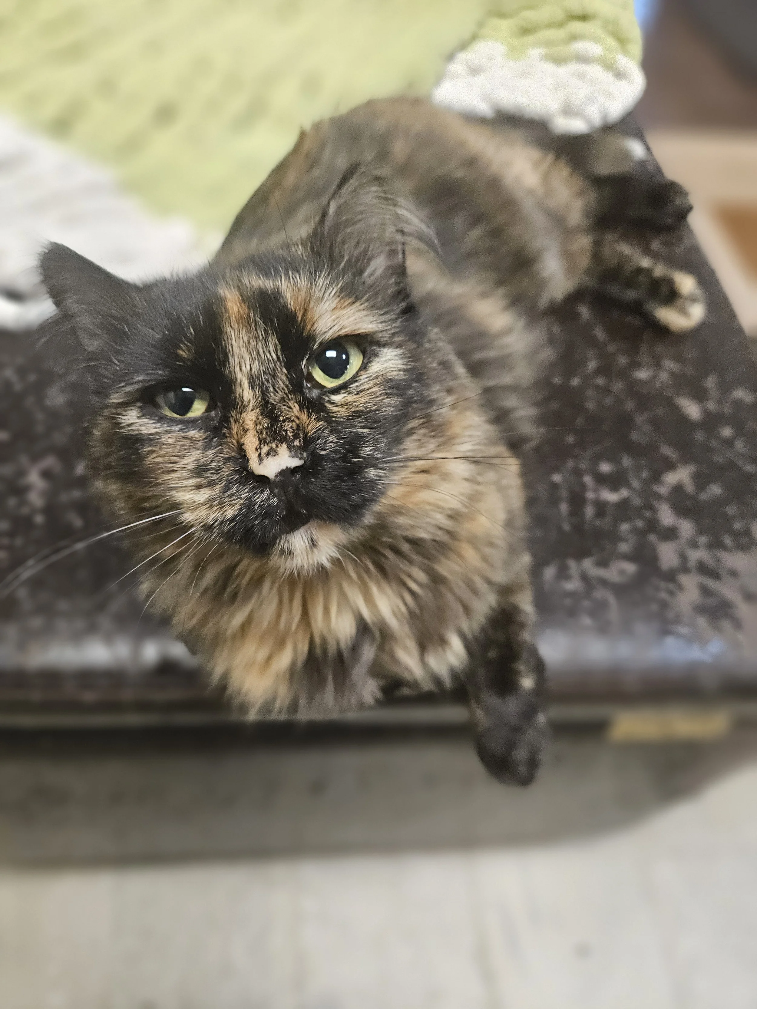 Quite possibly the most stunning feline you'll ever meet - just look into my electric green eyes and feel the softness of my beautiful coat. yes, I know, I'm fabulous. I've been here the longest and I have blossomed beyond belief. I used to be shy and timid but with kindness and patience, I have learned humans are kinda cool - I lean in for pets now….as long as the approach is with the respect a queen like me deserves. I've always had a soft spot for the big, gentle boys, but lately, my heart belongs to Pasha. We snuggle often and I dote on her as if she were my own. I dream of a serene home with a human that understands that I'm a sensitive soul. Is that you?