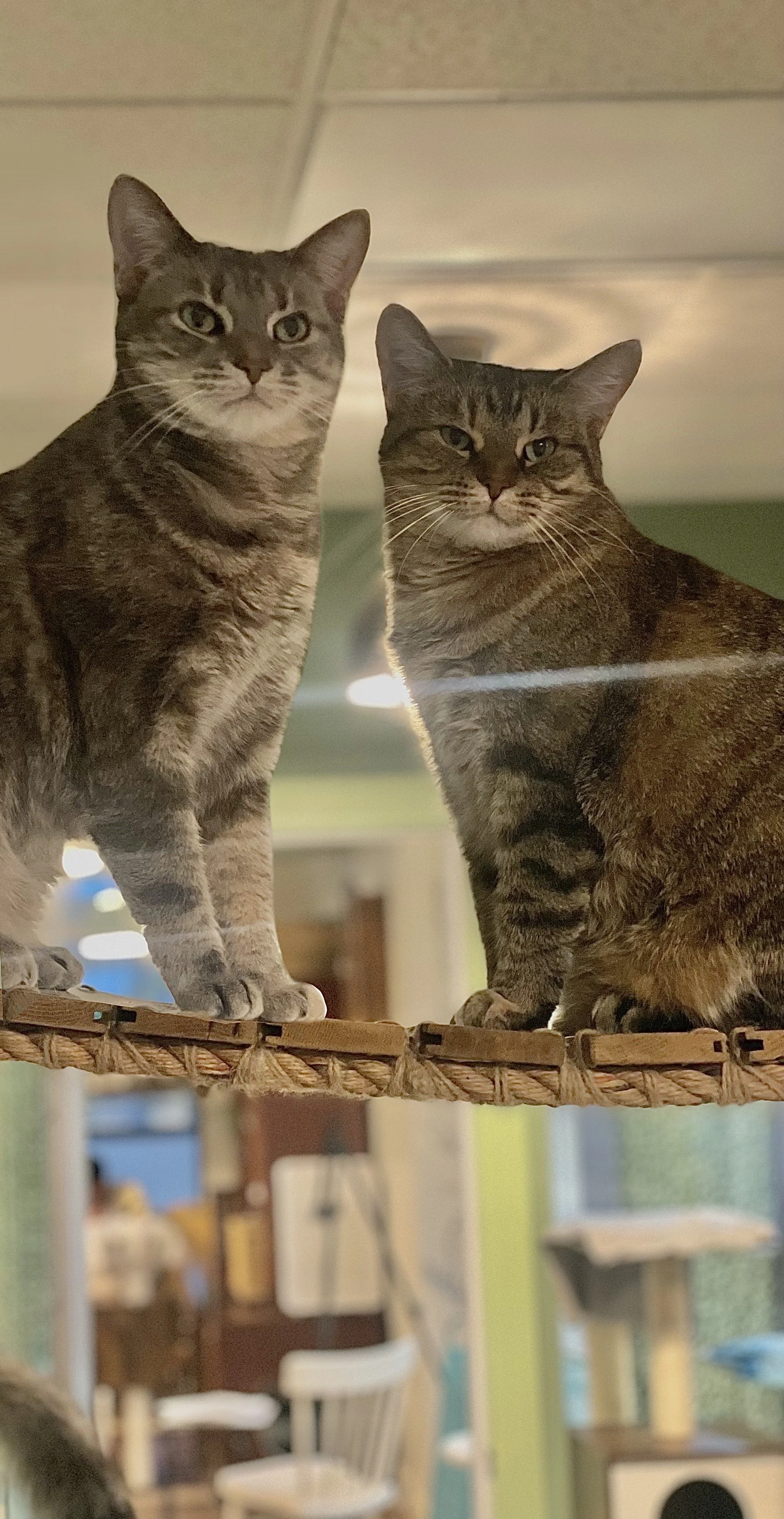 We're a pair of stunning lookers with the kind of lush coats you'll want to sink you fingers into (and yes, we approve...most of the time). Life for us is all about lounging in style, soaking up cuddles and keeping things laid-back. Smokie here - I'm the chill one. Recently, I found out I have asthma, but don't worry - the amazing humans are training me to use an inhaler like a pro. I'm smart, gentle and ready for love. My sassier sibling is Chynna. She meows for attention and purrs like crazy when she gets it…but when she's had enough? She'll politely (or not-so politely) let you know. A gals' gotta have boundaries! We're a bonded pair and the perfect mix of snuggles, personality and glam.